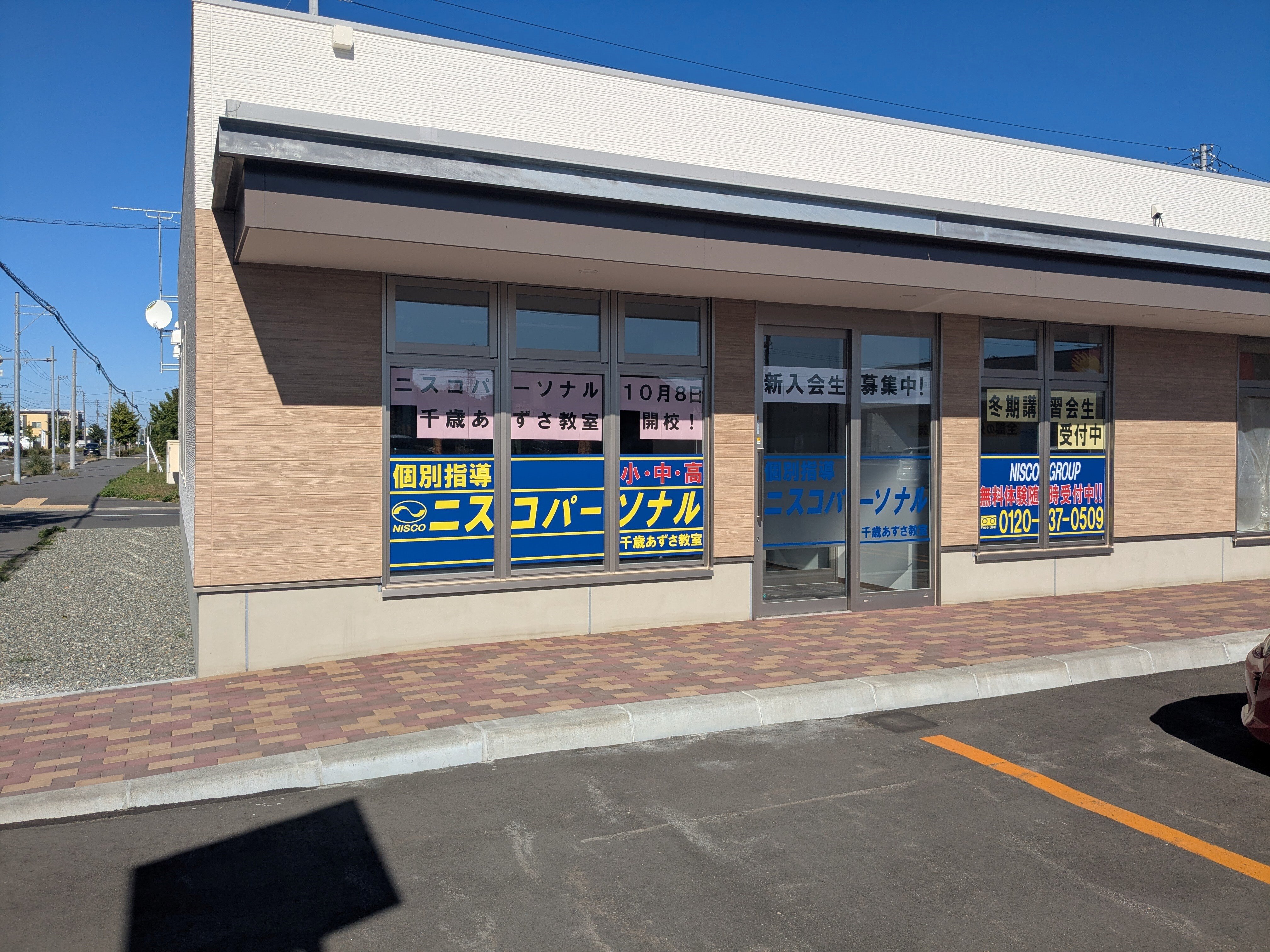 2025年10月に「千歳富丘地区」から「千歳あずさ地区」に移転しました。教室名も「ニスコパーソナル千歳あずさ教室」となります。新教室は様々な学習環境を向上させています。教室内は今まで以上にきれいで明るく、通常授業の学習ブースや落ち着いて学習のできる自習ブースが用意されています。移転前から向上心に溢れた生徒たちが集っており、自習室は常に生徒たちが利用し、活気に満ちていました。この雰囲気を継続させながら、一人ひとりの塾生の目標達成のために、我々スタッフも心機一転、今まで以上に塾生のために全力で頑張ります。今後も地域に密着しながら、将来を見据えた学習指導に邁進します。ニスコパーソナルは「最大の塾であるより、最高の塾でありたい。」と主張し続けています。