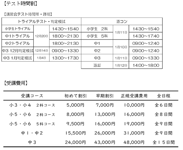 冬期講習会の日程等が決まりましたのでお知らせします!
